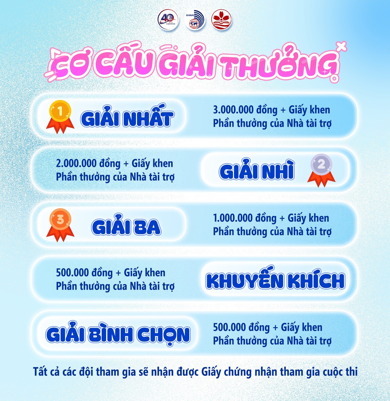 - Giải Nhất: 3.000.000 đồng + phần thưởng của Nhà tài trợ + Giấy khen